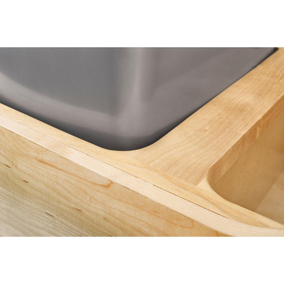 Nothing beats the look and warmth of natural wood. Rev-A-Shelf"TMs 4WCSC series is one of the best-selling pull-out trash containers and is specified by top kitchen designers. With its maple construction and Blum drawer slides, it"TMs no wonder why it is an industry favorite. Available in multiple widths, heights and polymer bin capacities, you will have no problem finding the right size to fit your cabinet or application.-Included: (2) Silver 35 quart waste containers with Wood frame and mounting hardware-Slide Type: 135lb Full-Extension BLUMOTION Slides w/Soft-Close-Solid dovetail drawer construction for durability-Waste Container bins Included:-Once installed, unit can be removed for easy cleaning-Slides are concealed to keep dirt and debris away-Designed for cabinet opening width of 14-1/2" to 18"-Door mount brackets: Adjustable door mount brackets are Included: and required for operation-Optional Rev-A-Shelf lids available, (sold separately) however the rear lid may be limited to use due to variety of countertops and/or handles-Construction: Fully Assembled Maple Wood construction with a clear coat finish for durability