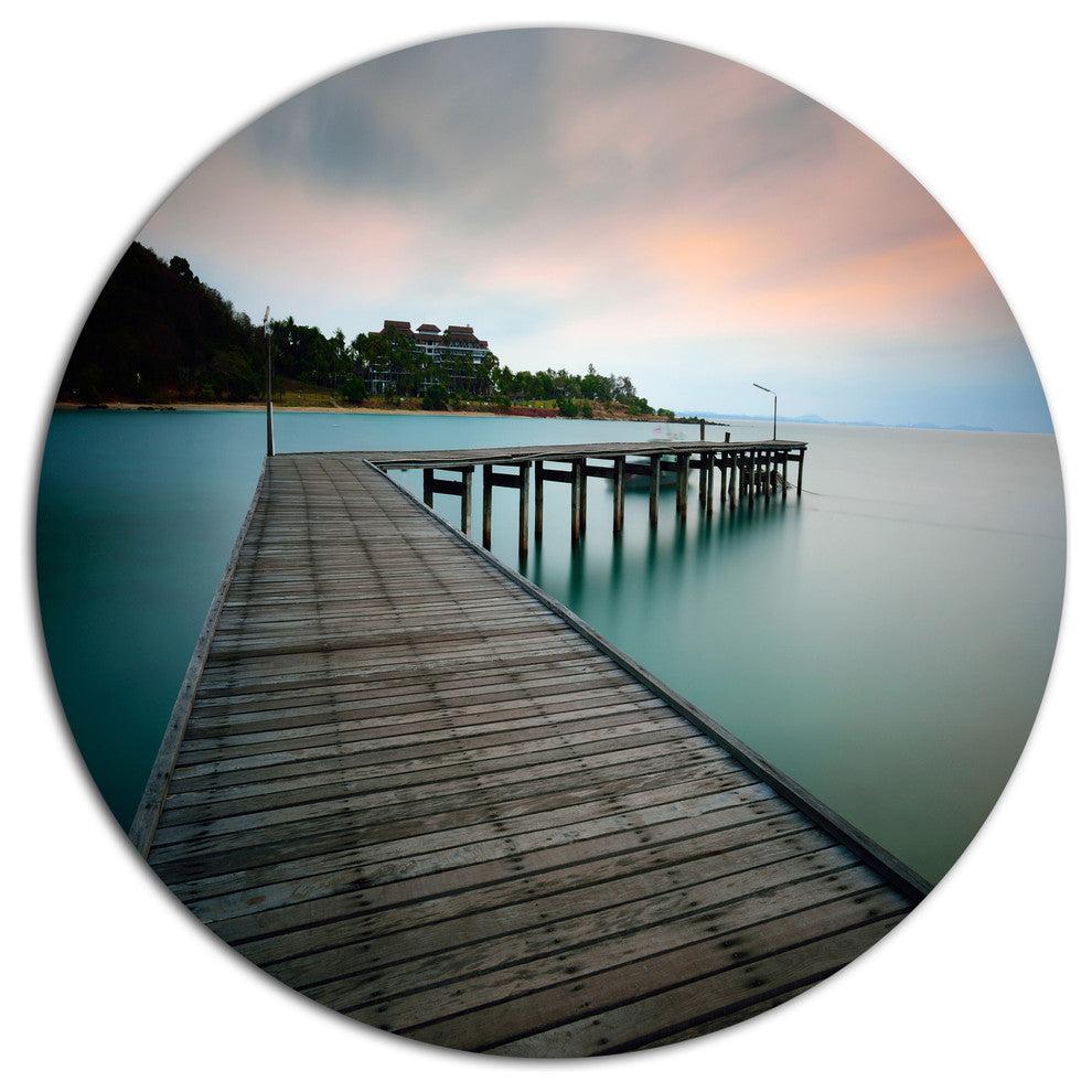Wooden Bridge Into Blue Sea, Modern Bridge Round Wall Art, 36"