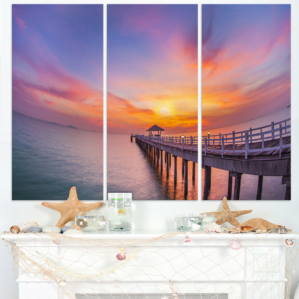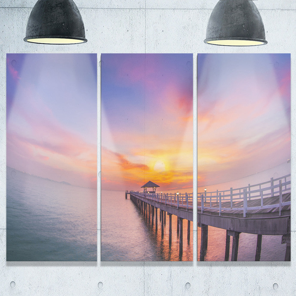 "Wooden Bridge Long Into the Ocean" Sea Pier Metal Wall Art, 3 Panels, 36"x28"