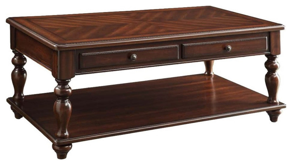Complete your living room with a well-designed coffee table. Offering a transitional style in a warm walnut finish, the coffee table features an easy lift top with storage space, tapered legs complemented by a bottom display shelf.