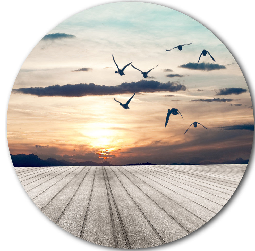 Wooden Floor Sunset, Seashore Art Disc Metal Wall Art, 36"
