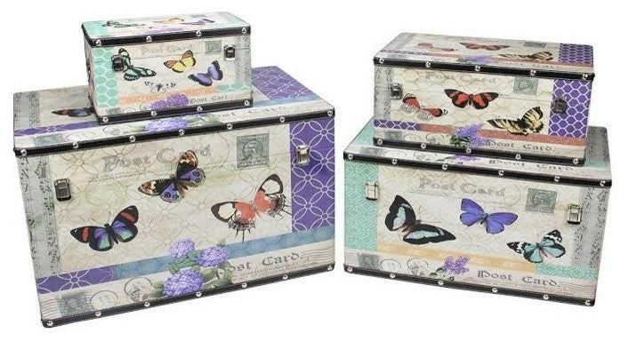 Wooden Garden-Style Butterfly Decorative Storage Boxes, Set of 4, 14-27"