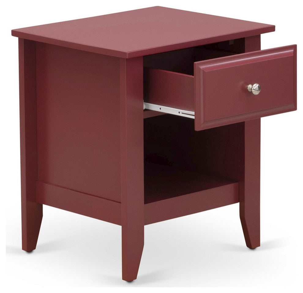 Wooden Night Stand For Bedroom, 1 Wooden Drawer, Burgundy