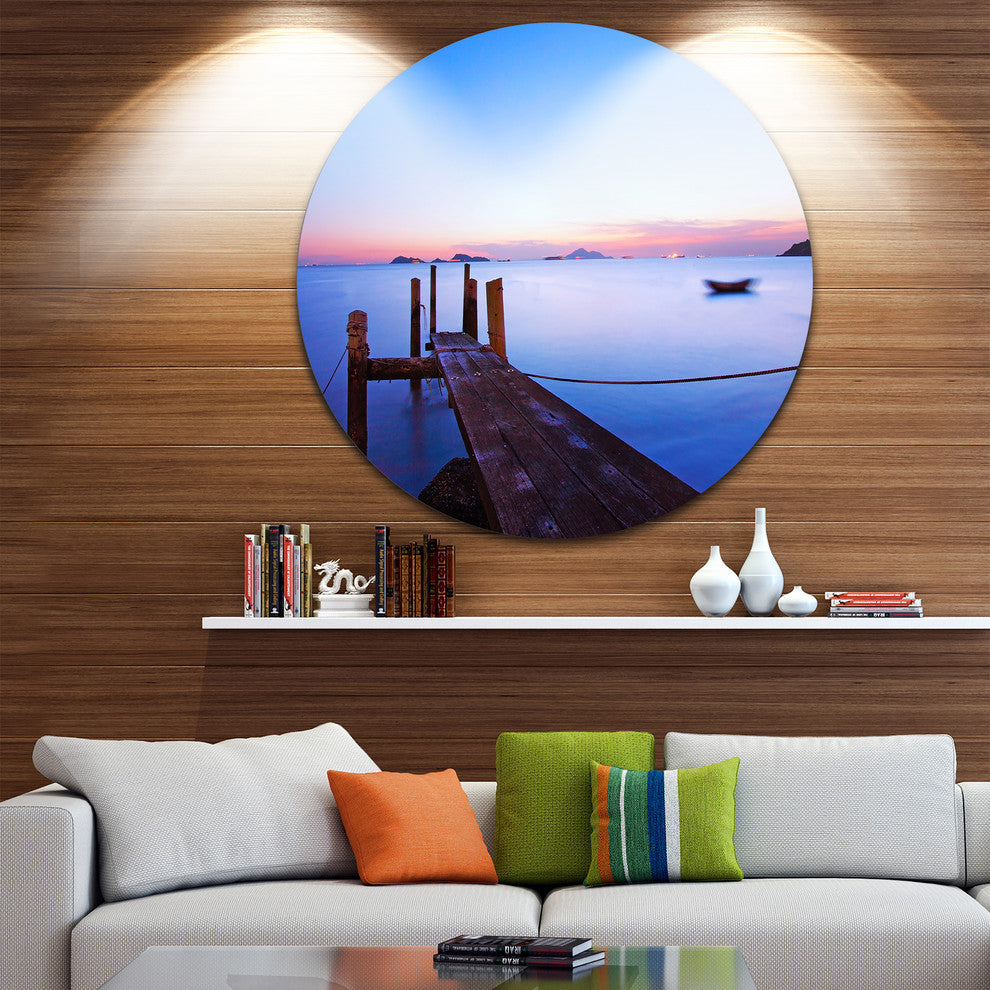 Bring Contemporary Abstraction to your home with this large Circle Metal wall art. This Wooden Pier at Dusk Metal Artwork makes it the focal point of any room or office.