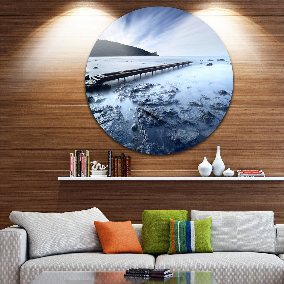 Bring Contemporary Abstraction to your home with this large Circle Metal wall art. This Wooden Pier Deep into Sea Metal Artwork makes it the focal point of any room or office.