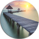 Wooden Sea Bridge And Sunset, Seashore Photo Disc Metal Wall Art, 23"