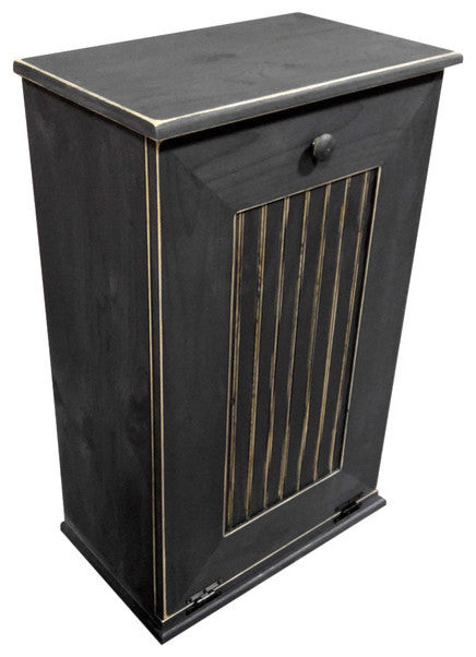 The by Sawdust City, LLC promotes your kitchen garbage can from eyesore to aesthetic. With a solid wood construction made from knotty pine, this cabinet keeps the messiest part of your kitchen out of sight (and tucks away odors too). A simple knob and a beadboard-style insert accent the cabinet''s front panel, which has a sturdy swing-out pivoting motion that keeps the trash can secure as it moves. The "” and other products from Sawdust City, LLC "” is functional and fashionable so your home achieves comfortable elegance.Please reference second image for color choiceFreestanding kitchen trash cabinetFront panel hinges outwardKeeps trash can secureWorks with standard-size garbage cansColor: Old blackMaterials: Solid knotty pineDimensions: W 22" x D 13.5" x H 35.80