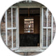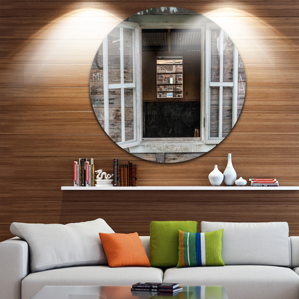 Wooden Walls And Windows, Landscape Round Wall Art, 36"