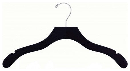 These sturdy, well-constructed hardwood hangers feature a space-saving flat body, two carefully crafted notches for the option of hanging straps, and a polished chrome swivel hook. The unique shape of these hangers allows them to hang a wide variety of garments from jackets to small tops. Rounded edges prevent pucker marks in garments'' shoulders. Finished with a double coating of lacquer to prevent splintering, these high quality, low cost hangers will last you for a lifetime.