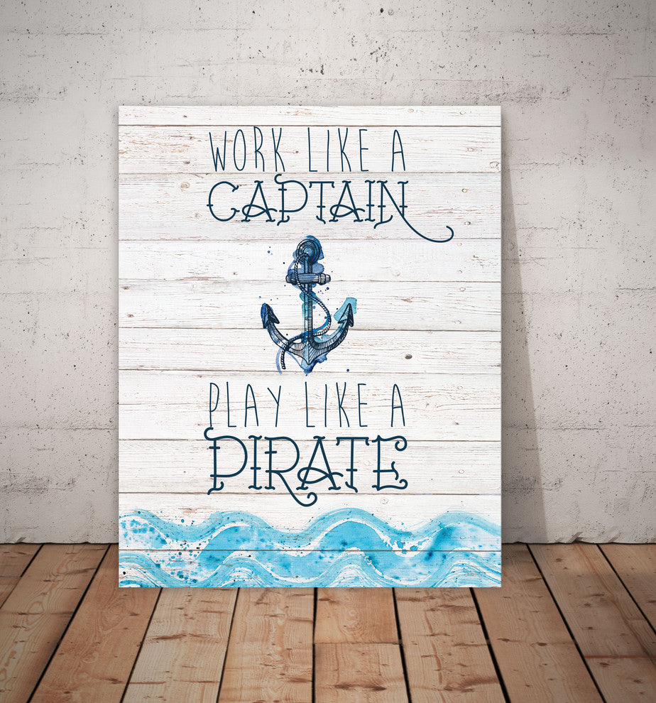 Work Like A Captain, Play Like A Pirate Paper Print, 11"x14"