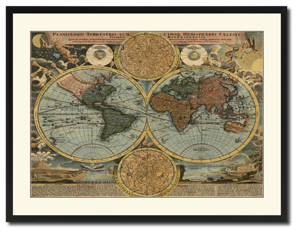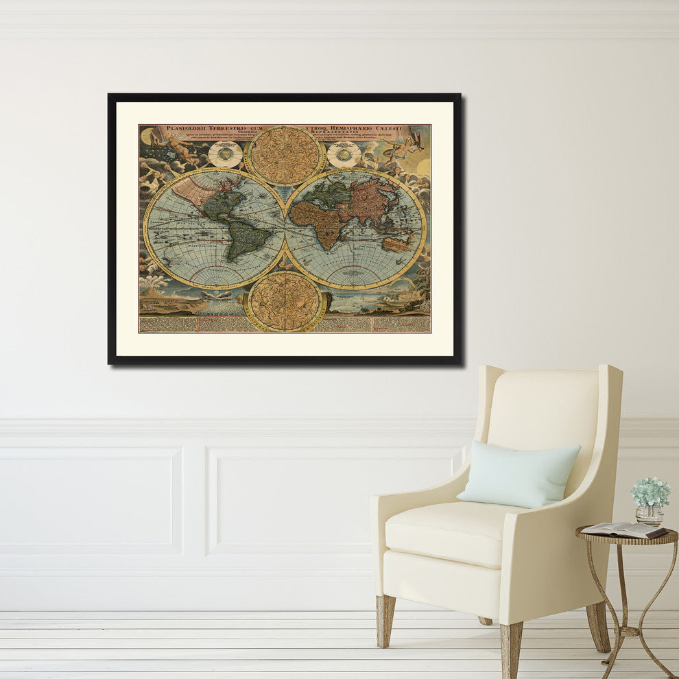 World Vintage Map Print On Canvas With Picture Frame 28" X 37"