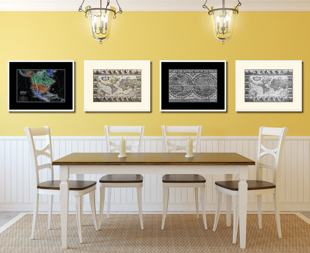 World Vintage Old Map Print On Canvas With Picture Frame 28" X 37"