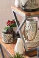 Set of three versatile mango wood and metal tables feature a modern x-leg design and natural toned inlay. Graduated set of three.Item Dimensions:17.5-20.5-23"h x 15-19.5-23"w x 13.25-16-19.25"