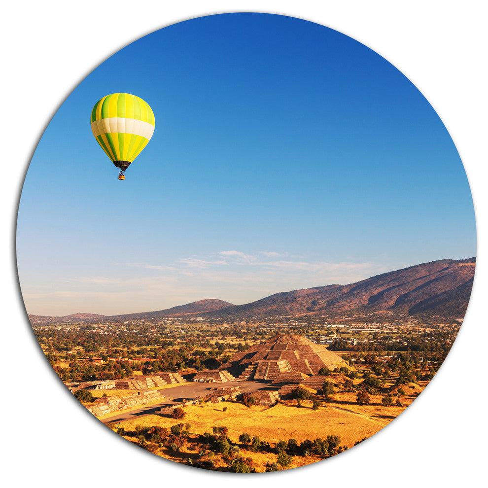 Yellow Balloon Over Mountains, Landscape Round Wall Art, 23"