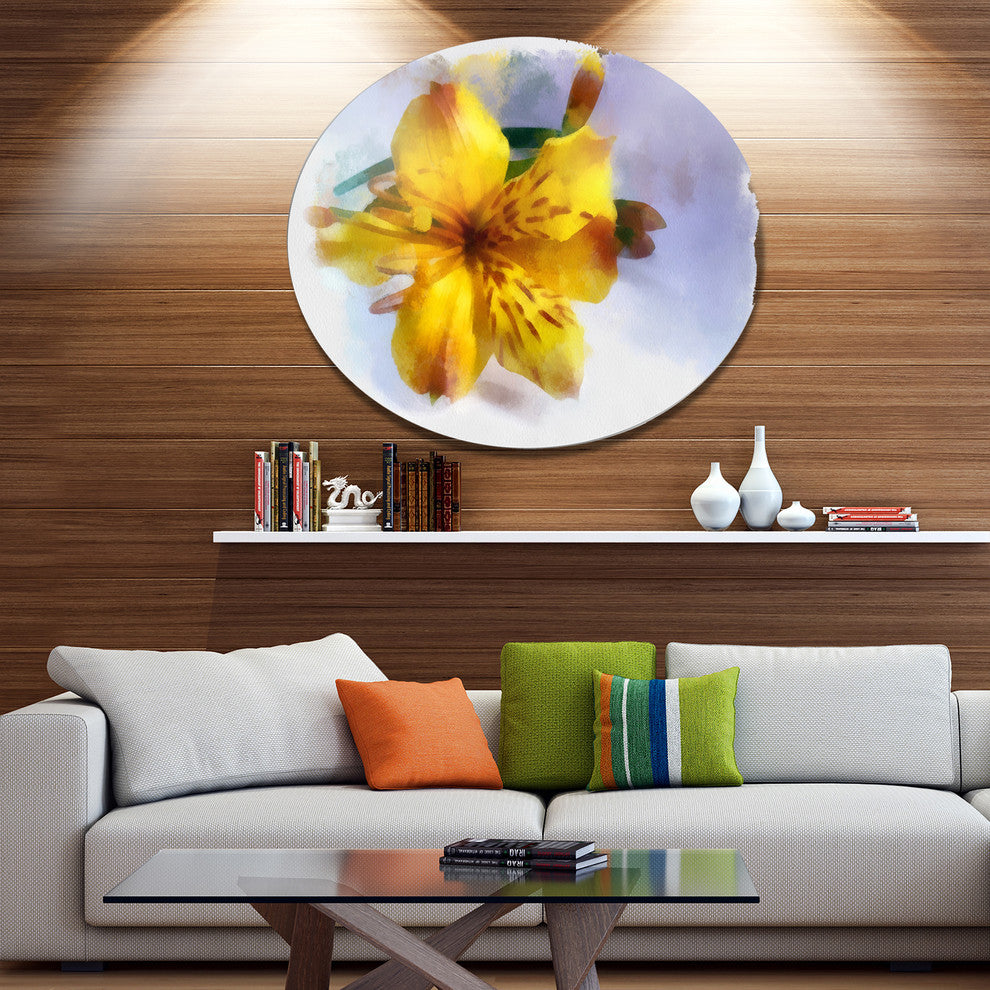 Bring Contemporary Abstraction to your home with this large Circle Metal wall art. This Yellow Lily Hand-drawn Flower Metal Artwork makes it the focal point of any room or office.