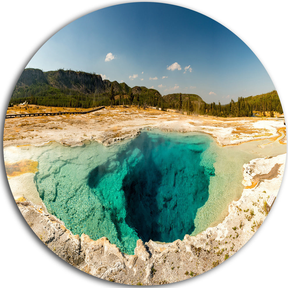 Yellow Stone Pool Panorama, Landscape Large Disc Metal Wall Art, 11"