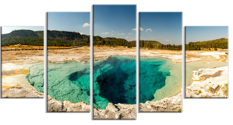 "Yellow Stone Pool Panorama" Landscape Print Wall Artwork, 5 Panels, 60"x32"