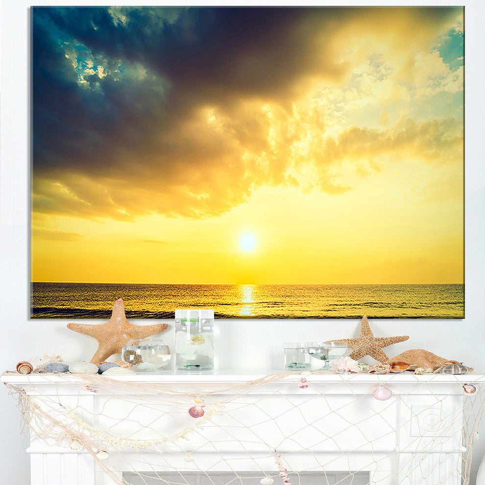The Yellowish Sky over Serene Seashore canvas art print is sure to make an impression on anyone who sees it. This artwork is gallery wrapped around a 1-inch solid wood frame and arrives carefully packaged and entirely ready to hang on the wall. Design Art only uses the highest resolution and pigments to ensure a crisp colorful print that is never faded or pixelated. This artwork is sure to be a conversation starter in any home or office.