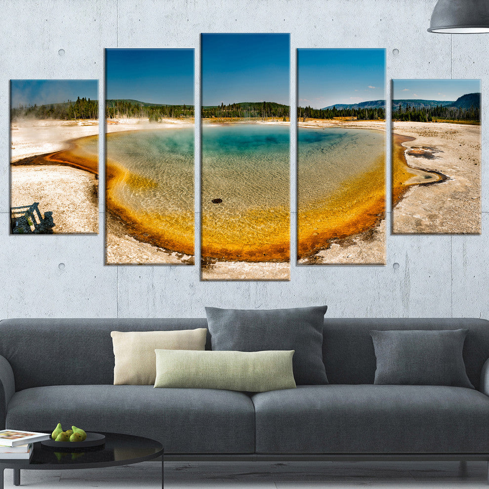 "Yellowstone Heat Pool Panorama" Landscape Print Wall Artwork, 5 Panels, 60"x32"