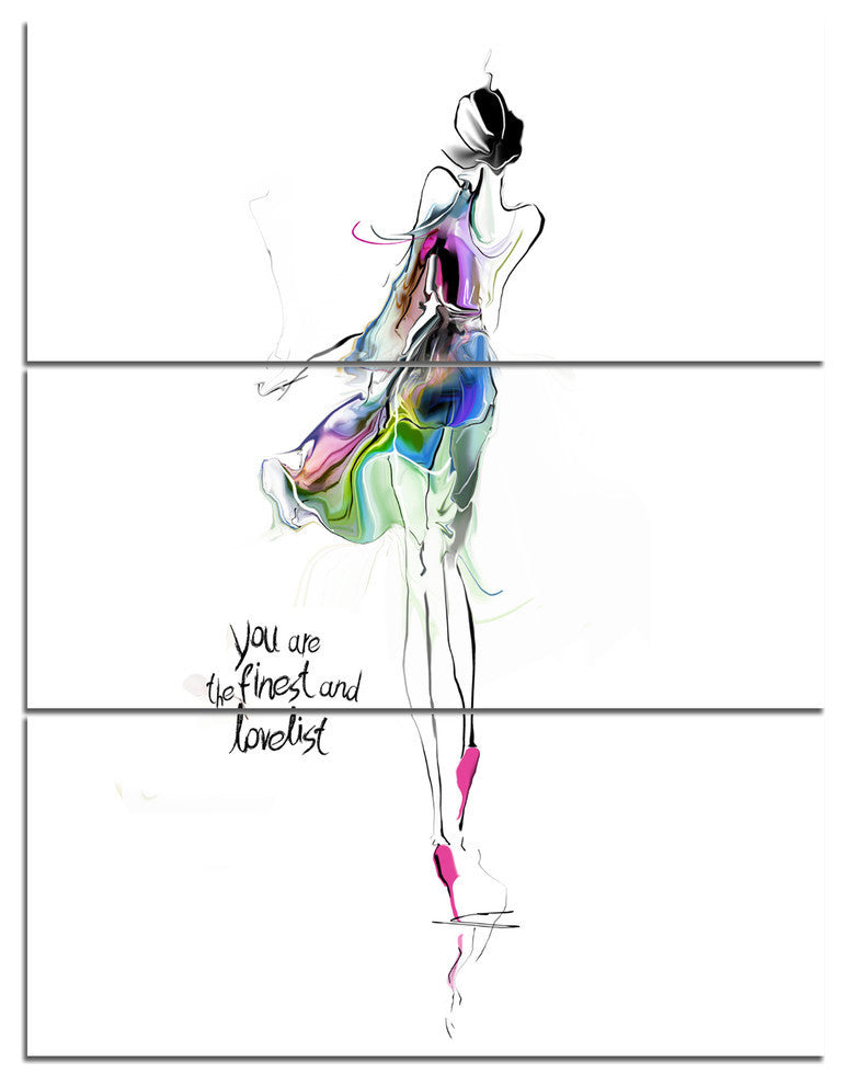 "Young Woman Green Purple" Digital Metal Wall Art, 3 Panels, 28"x36"