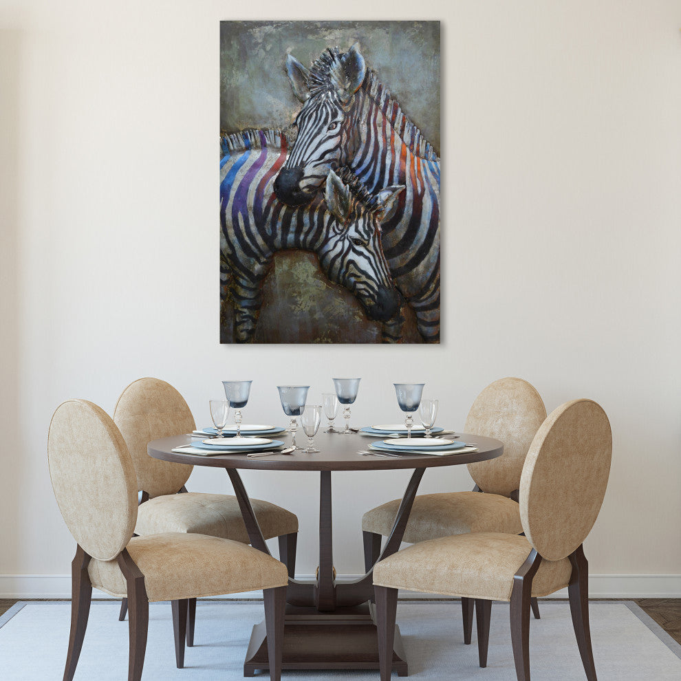 Zebra Wall Art Primo Mixed Media Hand Painted Iron Wall Sculpture 32x48