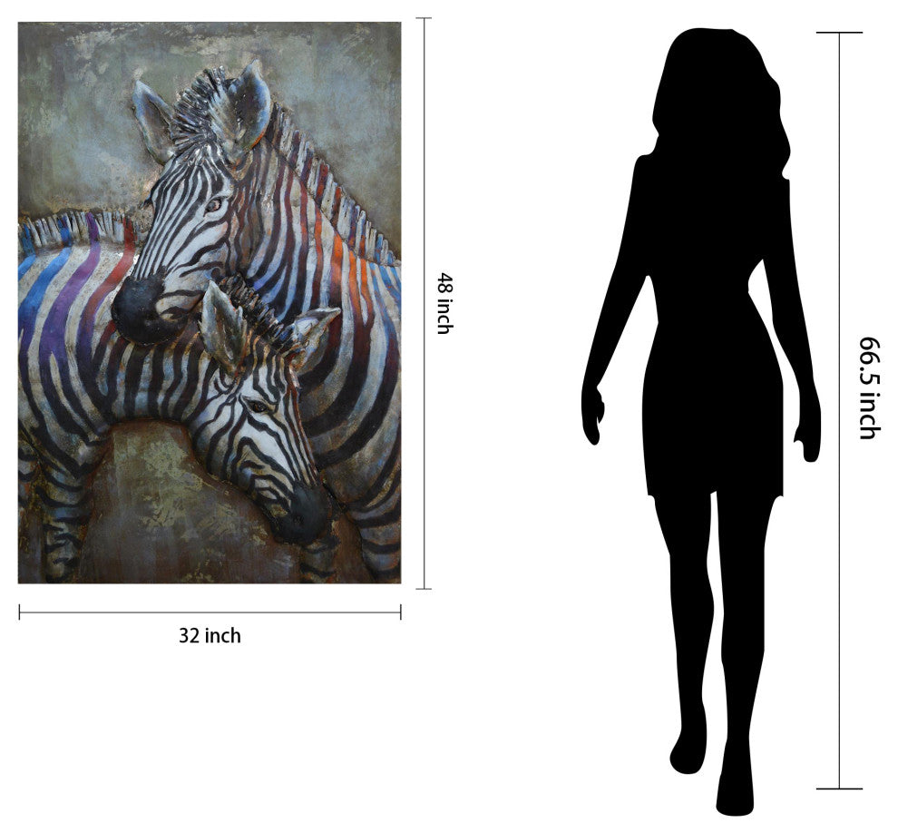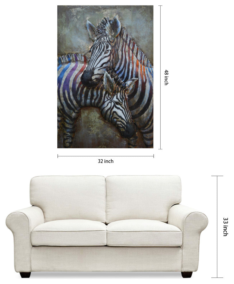 Zebra Wall Art Primo Mixed Media Hand Painted Iron Wall Sculpture  32x48