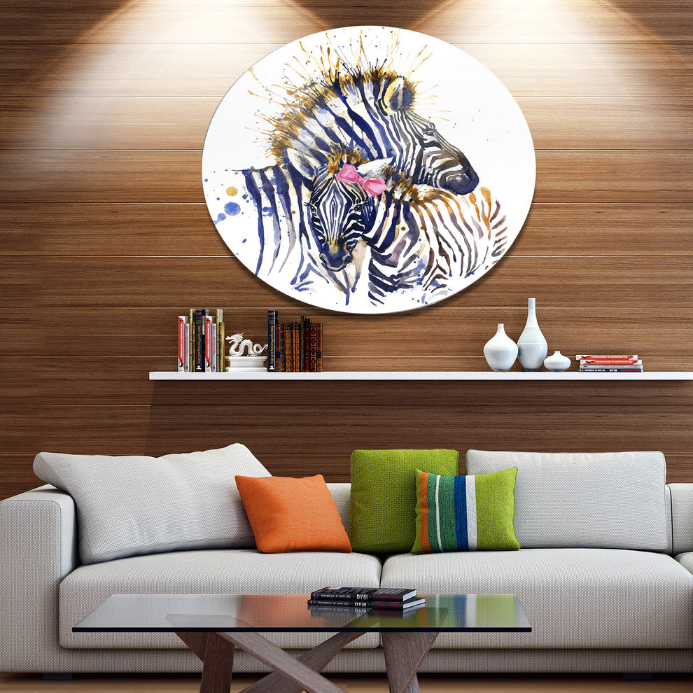 Bring Contemporary Abstraction to your home with this large Circle Metal wall art. This Zebra Watercolor Leftwards Metal Artwork makes it the focal point of any room or office.