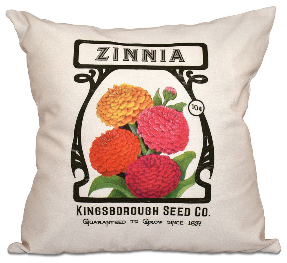 Zinnia, Floral Print Pillow, Cream (Ivory), 20"x20"